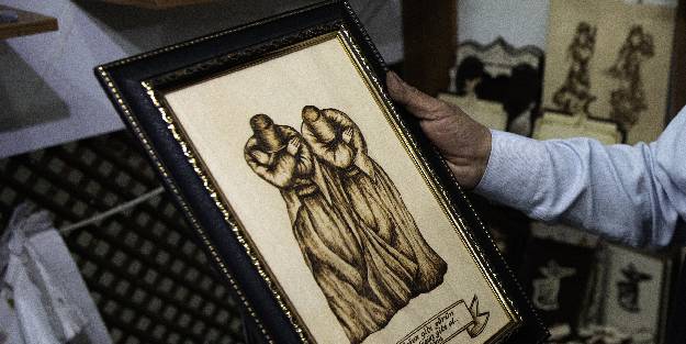 Konya'da çocukluğunda ahşap yakma ustası babasından öğrendiği sanatı sürdüren jeoloji mühendisi Hakan Demir, Hazreti Mevlana, semazen, doğa ve yaşam temalı tablolar hazırlıyor.
