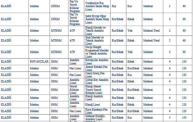 Elazığ’da bulunan liselerin kontenjan kapasitesi ne kadar?