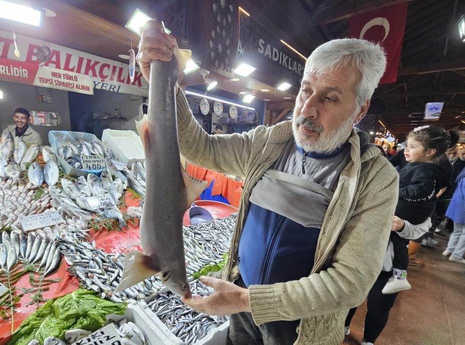 Kapalı çarşıda balıkçılık yapan Nihat Baştaş, köpek balığını satışa sundu. İskenderundan getirilen ve kilosu 600 liradan satışa sunulan köpek balığı hakkında açıklama yapan Nihat Baştaş,"Kanser hastaları genelde talep ediyor.İskenderundan geldi.Cam göz köpek balığı.İnsanlar ilk gördüğünde şaşırıyor.İlk defa görenler var.Fotoğraf felan çekenler oluyor.Kilosu 600 lira" dedi.