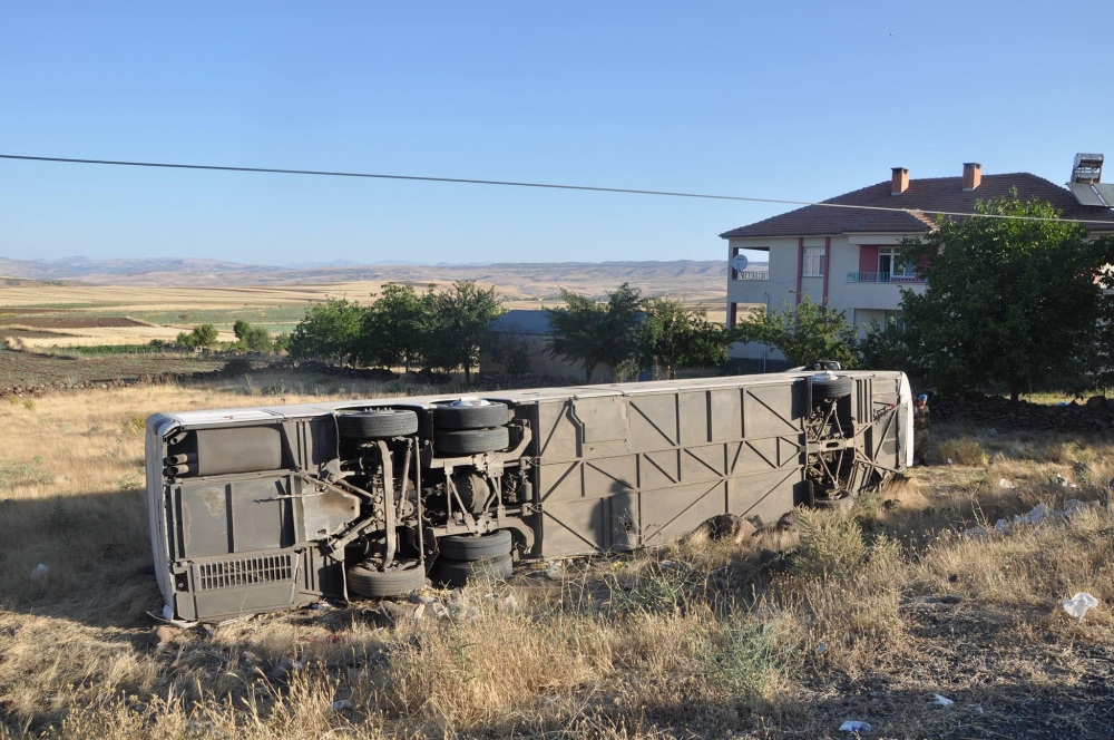 Elazığ'ın Karakoçan İlçesi Başyurt Köyü yakınlarında yolcu otobüsü karşı şeride geçtikten sonra devrildi. Kazada, 17 kişi yaralandı.