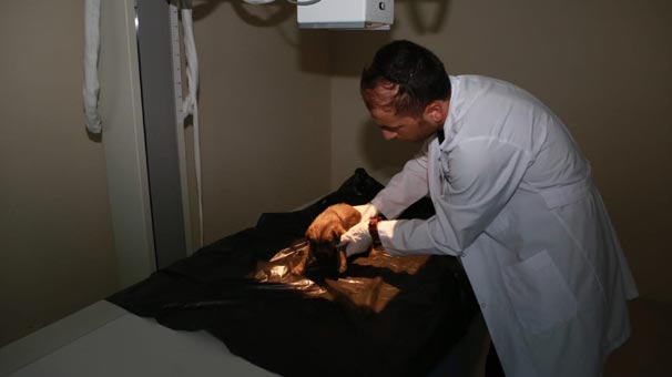 Bu arada daha önce Hayvan Hastanesinde bakım altına alınmış ve sağlığına kavuşturulmuş bir köpek, getirilen yavruları benimseyerek hemen koruması altına aldı.