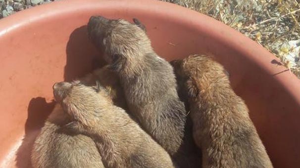 Elazığ Alacakaya karayolunda vatandaşlar, aşırı sıcağın etkisiyle bitkin halde 4 yavru köpek fark etti.