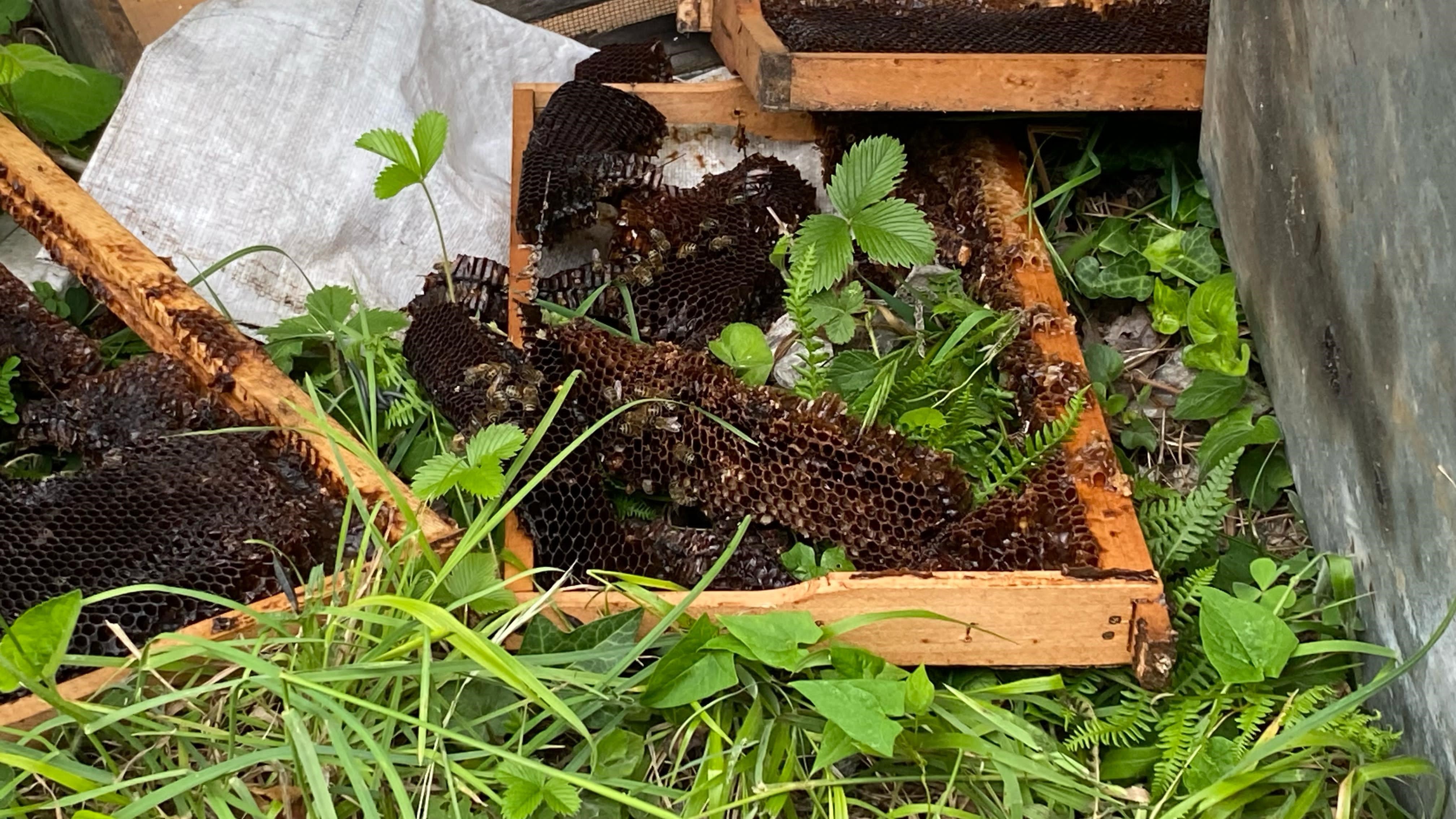 Ayı, bu sefer de elektrikli çitleri de geçerek kovanları parçalayarak balları yedi. Sabah saatlerinde bölgeye giden Merttürk, 25 kovanının da yine ayı tarafından parçalandığı ile karşılaştı.