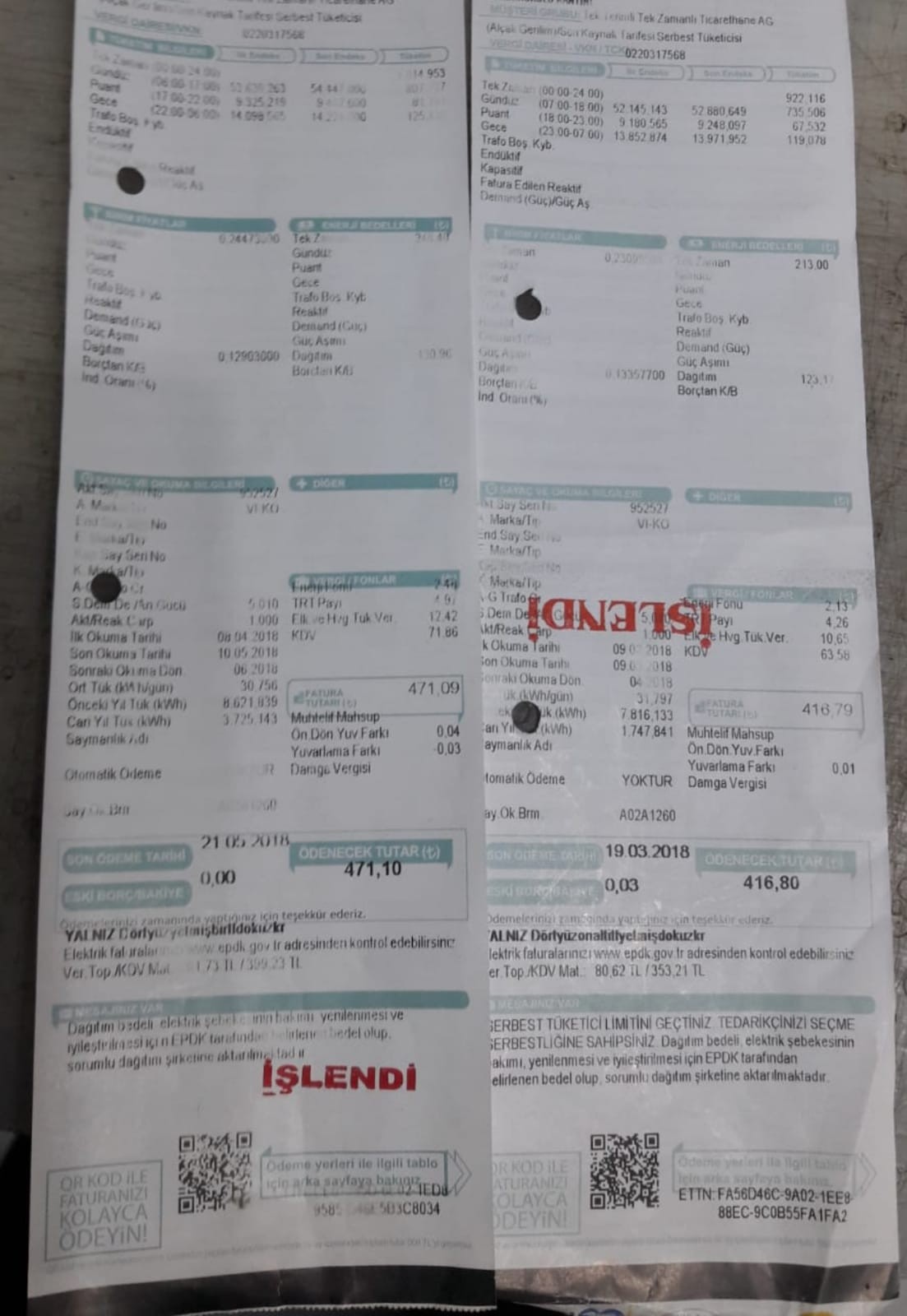 Gelen zamların ardından vatandaşlar faturaların 2'ye katladığını belirtirken dağıtım bedellerinin de arttırıldığı belirtildi. Akit İhbar Hattı'na gelen bir mesajda vatandaşın 5'inci ayda en fazla 470 TL fatura geldiğini beyan eden bir vatandaş, 10'uncu ayda 870 TL ödediğini ifade etti. İhbar Hattı'ndan faturalarını da gönderen vatandaş, asıl fırsatçılığı elektrik firmalarının yaptığını ifade etti.