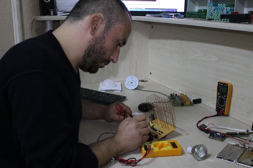 Kütahya'nın Tavşanlı ilçesinde, 35 yaşındaki elektronikçi, havadaki elektromanyetik dalgaları elektriğe dönüştüren cihaz geliştirdi.