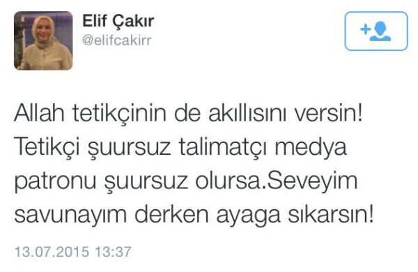 Çakır'ın bu mesajında, “Tetikçi şuursuz talimatçı medya patronu şuursuz olursa” sözleriyle Star ve Akşam gazetesinin sahibi Ethem Sancak'ı kast ettiği tahmin ediliyor.