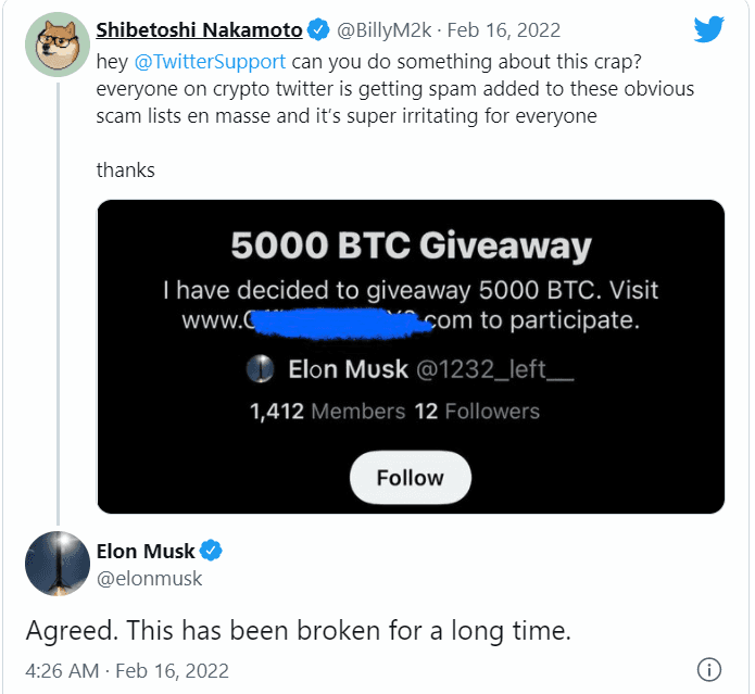 Son olarak Temmuz 2020’de Musk, Bill Gates, Kim Kardashian ve diğer önde gelen kişilikler, bugüne kadarki en büyük Twitter hack’i olan Bitcoin dolandırıcılarının hedefi haline gelmişlerdi.