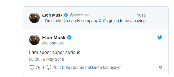 Ünlü girişimci daha öncesinde Boring Company isimli tünel açma şirketini finansal darboğazdan kurtarmak için şapka ve alev silahı satmıştı. Bu girişimlerini de Twitter üzerinden duyurmuştu. Dün akşamda attığı tweet ile şekerleme işine gireceğini açıkladı.
