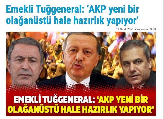 Türkiye'nin meşru hükümetine karşı halkı adeta ayaklanmaya çağıran Solmaztürk'ün bu skandal sözleri FETÖ'cü Aktifhaber'i mest etti. Solmaztürk'ün kaos kokan sözlerini "Emekli Tuğgeneral: AKP yeni bir olağanüstü hale hazırlık yapıyor" başlığıyla servis eden haber sitesi görünümlü provokasyon bülteni skandala destek verdi.