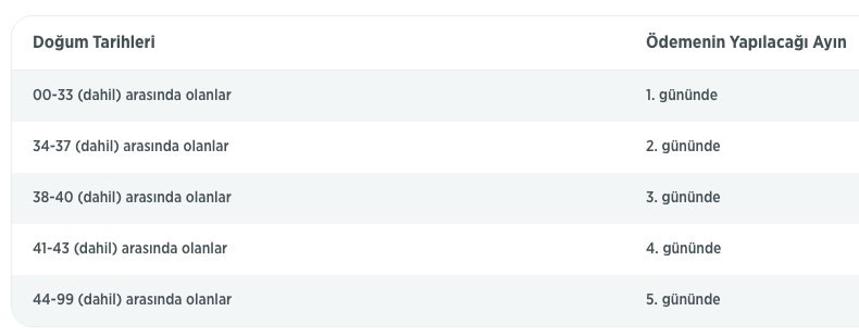 Ziraat Bankası Emekli Sandığı maaşları şu şekilde yatıyordu:
