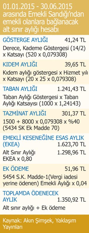 Memurlardan Emekli Sandığına tabi çalışması olanlarla bunların hak sahibi dul ve yetimlerine aylık bağlanmasında Emekli Sandığı uygulanmaya devam ediliyor. Bunların emekli aylıkları da memur maaş katsayısı ile taban aylık artışına bağlı. 2015 yılı ilk 6 ayında katsayılar artacağından bu kapsamdaki memurla ile dul ve yetimlerinin aylıkları da aynı oranda artacak.