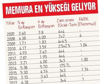 Memur ve emeklileri ise 3.18 ile son 9 yılın en yüksek farkı ile yüzde 7.18 zammı yakaladı. Temmuzda ise yüzde 7.48 bekleniyor