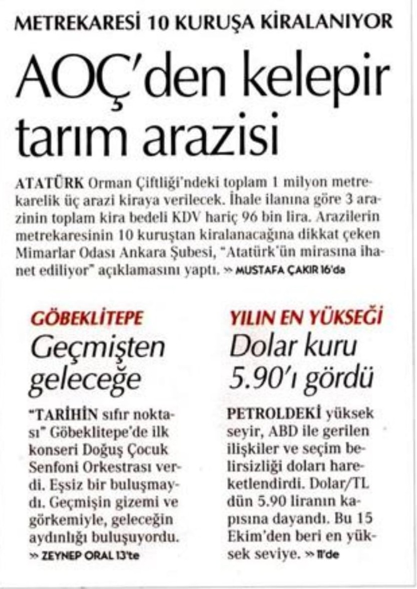 Cumhuriyet gazetesi bugünkü birinci sayfasında Kemalistlerin Müslümanları saldırmak için bahane saydıkları bir ifadeyi kullandı. Gazete haberdeki başlıkta 'Atatürk Orman Çiftliği'nin kısaltması olan 'AOÇ' ifadesini kullanmayı tercih etti. Kemalistler yıllardır bu ifadeyle Mustafa Kemal'e "O... Çocuğu" denildiğini iddia ediyordu. Kemalist medyanın ağır 'top'larından Emin Çölaşan da sık sık bu ifadeyi gündeme getirerek muhafazakar kesime kin kusuyordu.