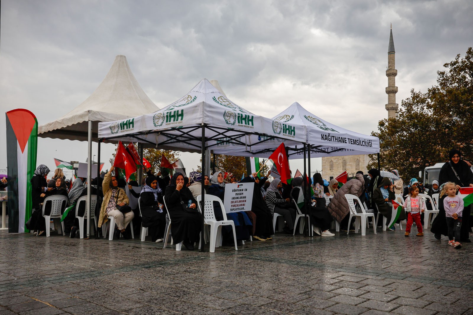 Eminönü’nde her gün 24 saat düzenlenen eyleme destek verme çağrısı yapan Yıldırım, “Pazar günü öğlen namazının ardından Ayasofya Meydanı’ndan Eminönü Meydanı’na kadar yürüyüş yapılacak. Şu bir milyon insanı bir toplayın ülke olarak. Ben halkı halka şikayet ediyorum. Ankara’da da aynı saatleree ve Türkiye’nin tüm illerinde bu eylemler yapılacak. Hepinizden destek bekliyoruz. Sumud Filosu’nda şunu öğrendik, İsrail’in müdahale kapasitesi açığa çıktı. Yani 100-150 tane gemi göndersek bir kısmı içeri girecekmiş” şeklinde konuştu.
