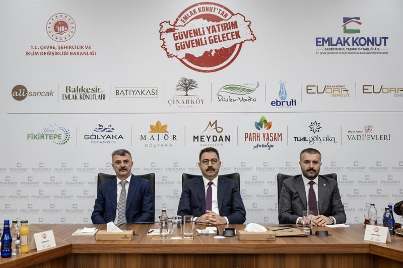 Emlak Konut GYO'nun Genel Müdürlük binasında düzenlenen basın toplantısında, "Güvenli Yatırım, Güvenli Gelecek" sloganıyla başlatılan kamyanyaya ilişkin bilgi verildi.