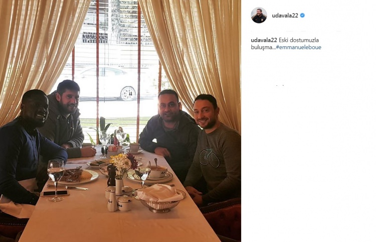 Galatasaray yardımcı antrenörleri Hasan Şaş ile Ümit Davala, zor günler Eboue'yi yemekte ağırladı.
