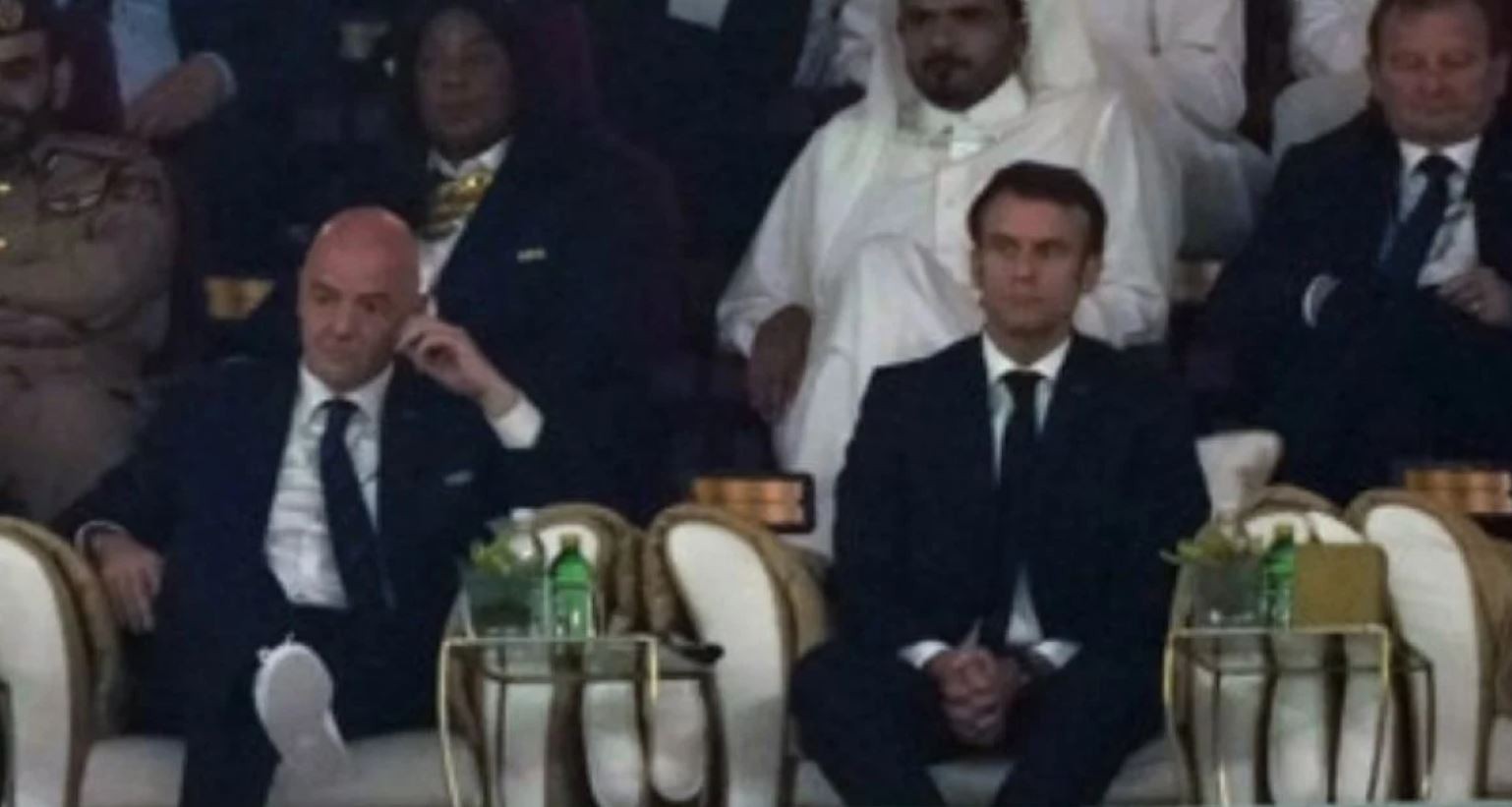 Kupanın sahibinin belli olacağı maça güler yüzle başlayan Macron'un, ilerleyen dakikalarda yüz ifadesi değişti.