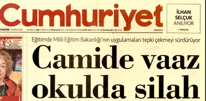 Öğrencilerin anlamlı etkinliği akıllara Cumhuriyet'in hazımsızlığını getirdi. Cumhuriyet, dün okul bahçesinde savunma sanayisi sergisi açılmasını eleştirmişti.