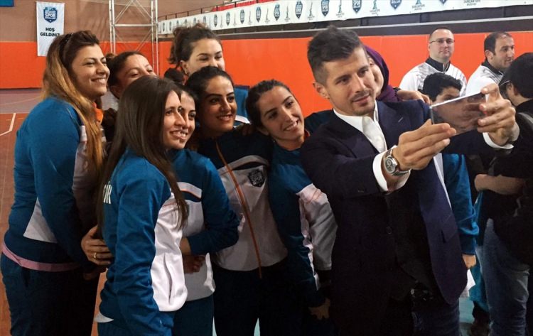 Söyleşinin sonunda kendisine çiçek ve plaket takdim edilen tecrübeli oyuncu, hatıra fotoğrafı çektirdi.