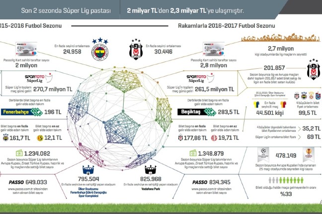 * Bileti olduğu halde maça gelmeyenlerin oranı bir önceki sezon yüzde 39 olurken, 2016-2017 sezonunda aynı oran yüzde 33'e geriledi. Passolig Genel Müdürü Ceyhun Kazancı, devam etmekte olan sezonda bu oranın daha da düşerek yüzde 22 olduğunu belirtti.