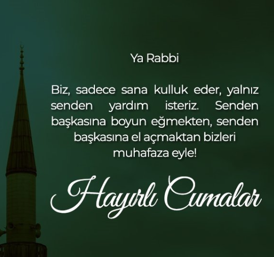 "Rabbim, cuma hürmetine tüm dertlerimize deva, gönlümüze huzur nasip etsin. Hayırlı Cumalar."