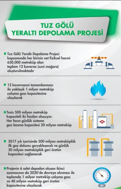 Enerji ve Tabii Kaynaklar Bakanı Berat Albayrak, yapımı devam eden Tuz Gölü Yeraltı Doğalgaz Depolama Tesisinde incelemelerde bulundu.