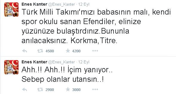 Levent Kenez, bugünkü köşe yazısında Enes Kanter'in artık susması gerektiğini belirterek; "Milli takımın farklı yenildiği bir maçtan saniyeler sonra attığın tweet seni antipatik yapıyor." dedi.