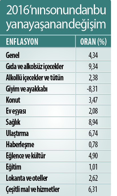 Yİ-ÜFE ise 2016 yılının aralık ayına göre yüzde 6,38, geçen yılın aynı ayına kıyasla da yüzde 16,09 arttı. 2016 sonuna göre sağlık fiyatlarındaki geneli 2’ye katlayan yükseliş dikkat çekti. Şubat ayında sağlık ücretlerine gelen zamların etkisiyle 2016 sonundan bu yana ilaçlarda artış yüzde 14,63 seviyesinde gerçekleşirken, ameliyat yüzde 15,35, normal doğum yüzde 16,89, sezaryen doğum ise yüzde 13,55 zamlandı. Sağlık sektöründe dikkat çeken diğer artışlar ise şöyle oldu: Diş dolgu yüzde 11,83, doktor muayenesi yüzde 11,14, diş çekme ücreti yüzde 10,91. Sağlık sektöründeki enflasyonun kurdaki artış ve ilaç fiyatlarına gelen zamdan kaynaklandığını belirten Ekonomist Gizmen Nalbantlı, “Tıpta kullanılan alet ve cihazların ithal olması da fiyatlar üzerinde etkili oldu” değerlendirmesinde bulundu.