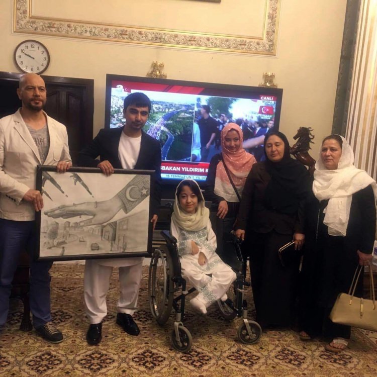 Elleri ve ayakları felçli olan 16 yaşındaki Rubaba Muahammadi, resim çizmekten vazgeçmedi. Kalemi ve boya fırçasını ağzıyla tutarak çizdiği resimleri ve tabloları sergileyen Muhammadi, 15 Temmuz konulu resim çizdi. Tabloyu Afganistan Türklerinin Siyasi Partisi Başkanı Batur Dostum'a sunan engelli kız, Afgan Türk kardeşlik bağının daha da pekişmesi mesajını verdi.