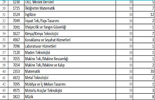 Engelli öğretmen atama yapılacak alanlar, kontenjanlar taban puanı listesi Şubat 2021