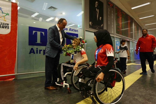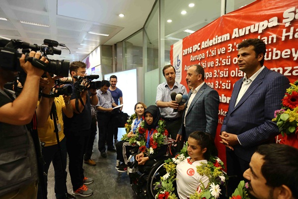 2016 IPC Atletizm Avrupa Şampiyonası’nda yarışarak 5 madalya kazanan Bağcılar Belediyesi Engelli Atletizm Takımı’nın milli sporcuları Atatürk Havalimanı’nda sevgi gösterileri eşliğinde çiçeklerle karşılandı. Milli sporcular yerli ve yabancı yolcuların da ilgi odağı oldu.