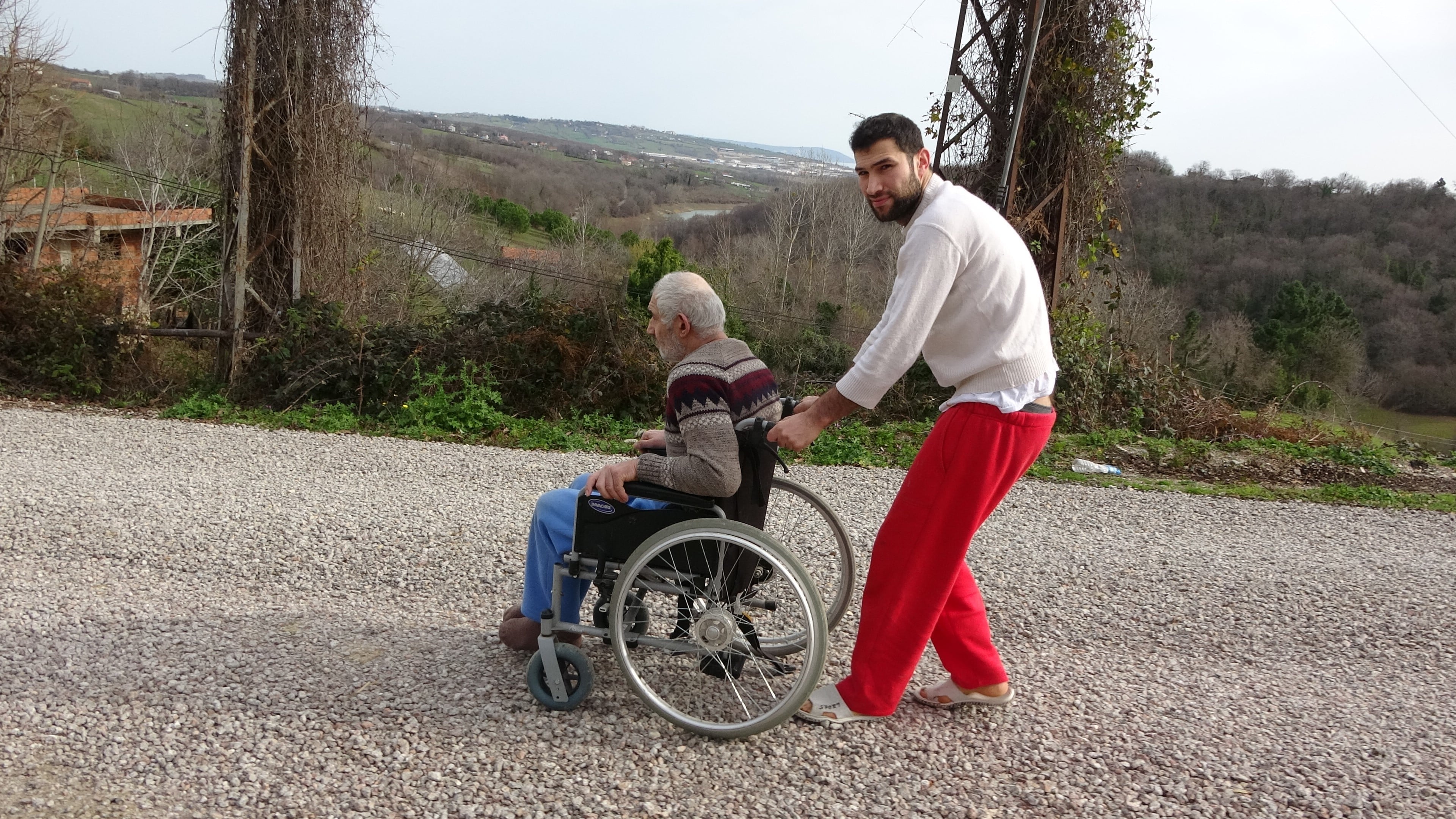 Yolların çok bozuk olduğunu, bu nedenle de tekerlekli sandalyelerin hızlı yıprandığını ve kırıldığını söyleyen oğlu Ramazan Öztaban, “Her sene bir araba değiştiriyorum, akü değiştiriyorum. Düşüyor, hastaneye gitmek zorunda kalıyoruz. Yollar dar, bozuk ve yerde çakıl var. Araba gittiği zaman da yan yatıyor çakıl olduğu için. Buraya çakıl dökmeye gerek yok, çünkü engelli adam var burada. Yollara ne kadar çakıl dökülse de aynı, bunu düşünmeleri lazımdı. Herkes biliyor burada engelli insanın olduğunu. Devletimizden yardım istiyoruz” diye konuştu.