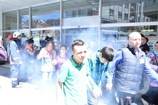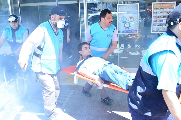 Bağcılar’daki Engelliler Sarayı’nda düzenlenen Afet Acil Durum Tatbikatı’nda heyecanlı sahneler yaşandı. 7.2 şiddetindeki deprem sırasında çıkan yangın sebebiyle binayı duman sardı. İçeride mahsur kalan engelli kursiyerlerin kurtarılması için harekete geçen YARKUR ve AFAD ekipleri başarılı bir kurtarma operasyonuna imza attı. En üst kata mahsur kalan engelliler ipli istasyon vasıtasıyla kurtarılırken, film sahnesini aratmayan görüntüler ortaya çıktı.
