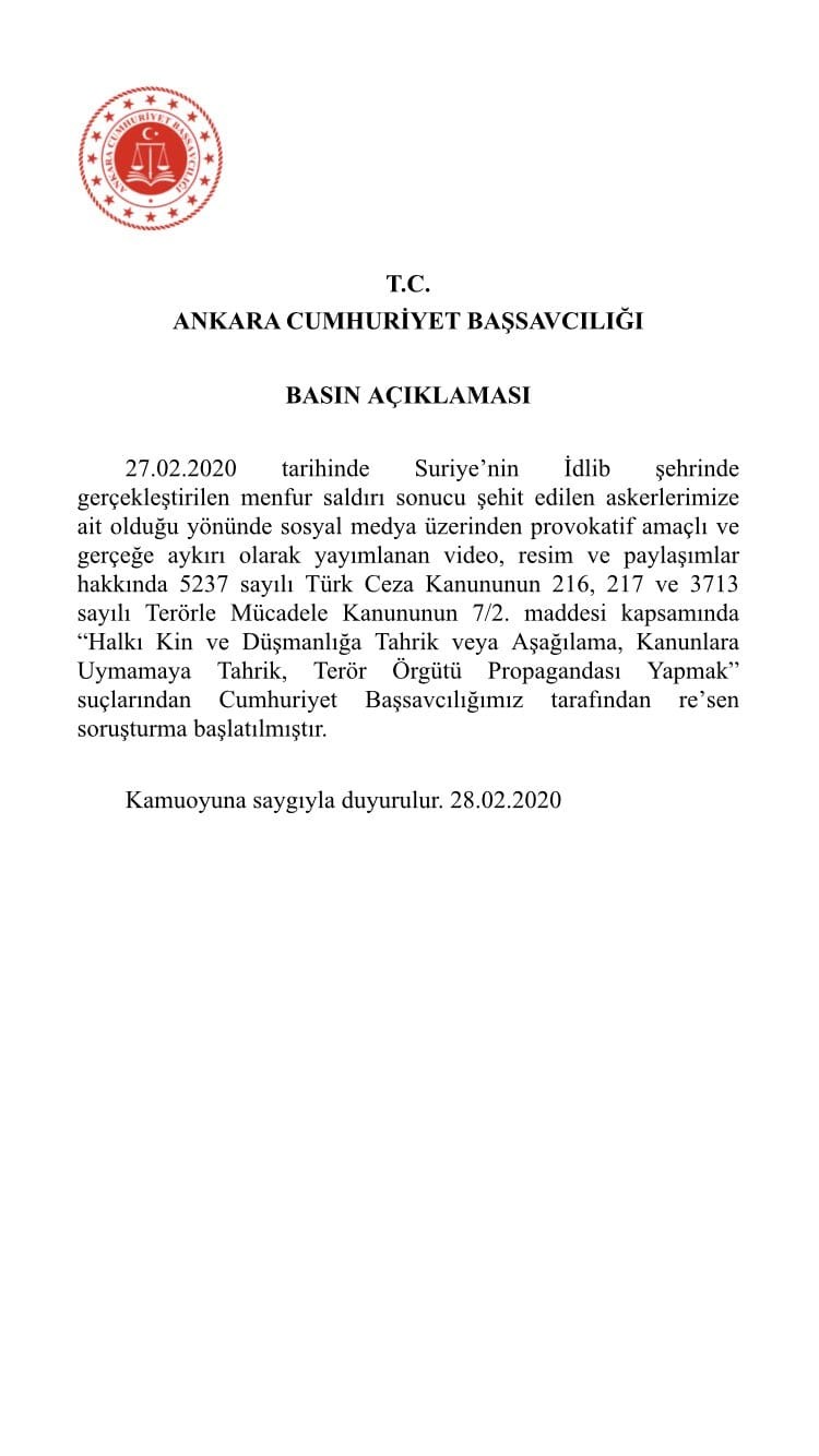 Ankara Cumhuriyet başsavcılığı basın açıklaması