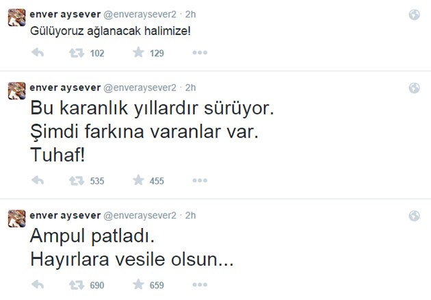 Enver Aysever, Türkiye genelinde yaşanan elektrik kesintisini fırsat bilip AK Parti hükümetini karaladı.