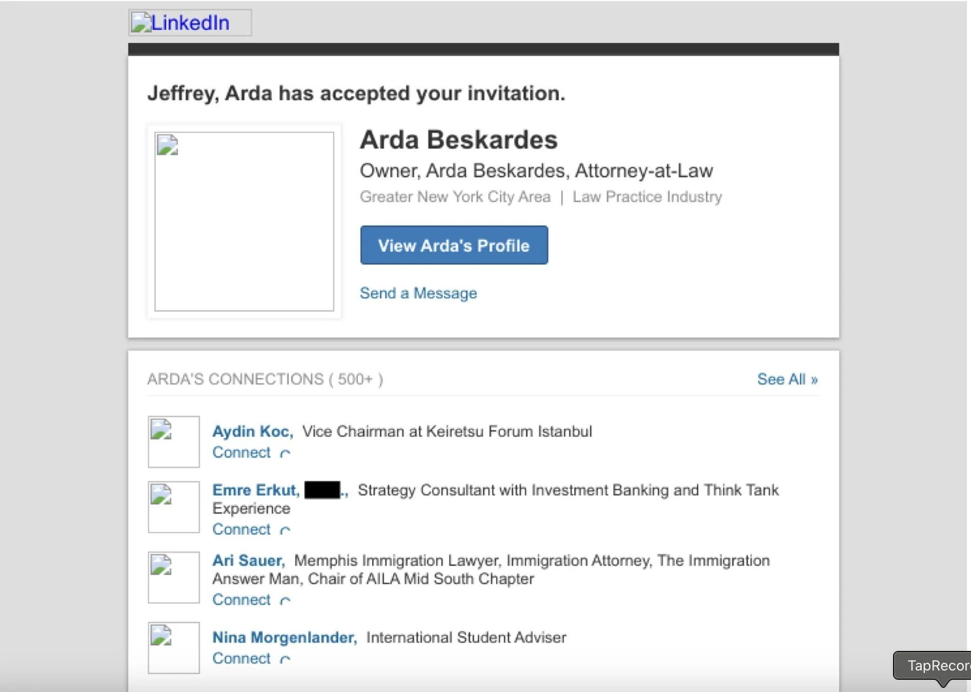 Epstein soruşturması kapsamında yayımlanan belgelerde yer alan iMessage kayıtlarında adı geçen Türk avukat Arda Beşkardeş’in, ABD’de göçmenlik ve vize işlemleri alanında faaliyet yürüttüğü, aynı zamanda ABD hükümeti tarafından finanse edilen VOA’da (Amerika’nın Sesi) “uzman” sıfatıyla programlara katıldığı öğrenildi.