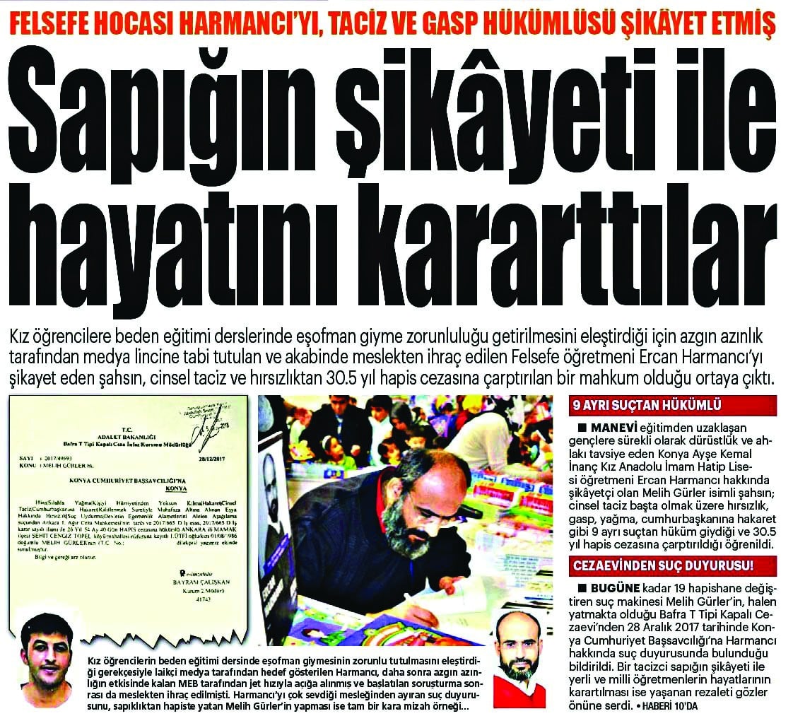 Mazlumun yılmaz sesi Akit, 5 Mart 2019 tarihinde manşetten verdiği “Sapığın şikâyetiyle hayatını kararttılar” haberiyle Harmancı’yı şikayet eden şahsın cinsel taciz ve hırsızlıktan hüküm giydiğini ortaya çıkardı. 6 Mart’ta “Harmancı’ya odatv kumpası”, 8 Mart’ta “Bu teftiş kurulu kime çalışıyor?” 12 Mart’ta “Hocamızı geri is-ti-yo-ruz” ve 23 Eylül’de “Ercan Hoca okuluna geri dönsün” başlıklı haberlerle masum öğretmene sahip çıkmıştı.
