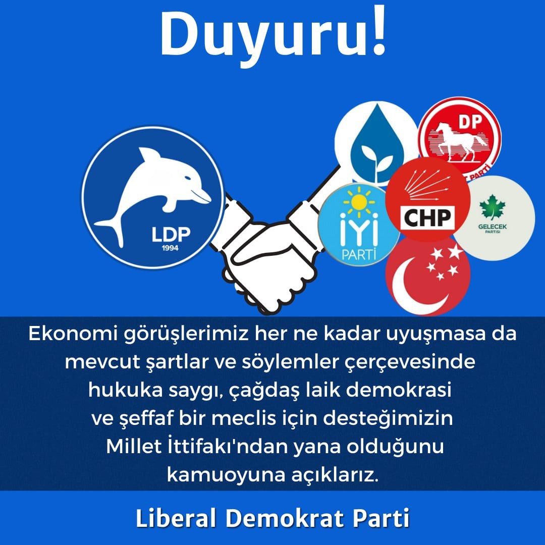 Türkiye Değişim Partisi'nin Millet İttifakı'na desteğini açıklamasından sonra, LDP de, 6'lı masadan yana saf tuttu.