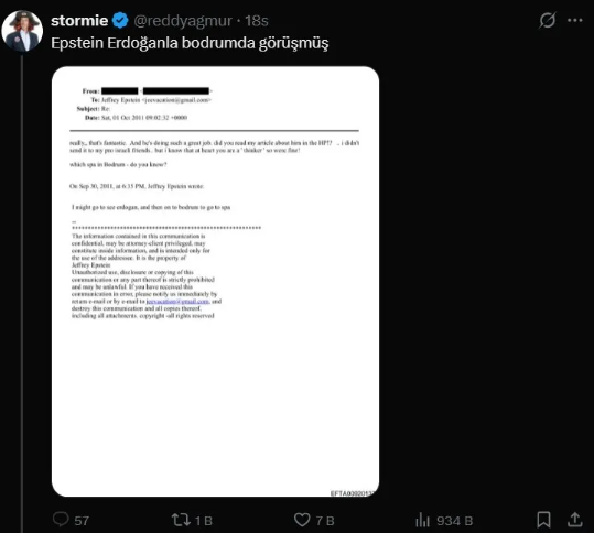 İmamoğlu destekçisi bir sosyal medya hesabı 2011 tarihli belgeyi paylaşıp "Epstein Erdoğan'la Bodrum'da görüştü" yalanı dile getirdi.