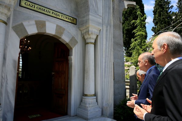 Duaların ardından kurdeleyi kesen Erdoğan, emeği geçenlere teşekkür etti. Daha sonra beraberindekilerle türbeyi gezen Cumhurbaşkanı Erdoğan, restorasyon çalışmaları hakkında da yetkililerden bilgi aldı.