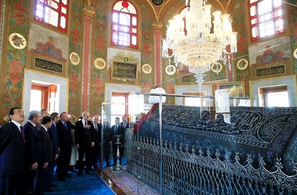 Erdoğan geçen yıl henüz restorasyonu tamamlanmamışken yine buraya gelmiş, Fatih Sultan Mehmed'in kabri başında Kur'an-ı Kerim okumuştu.