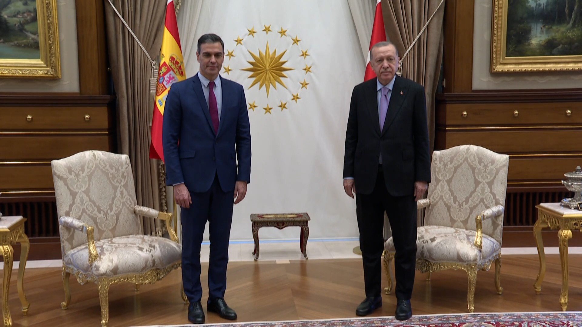 İletişim Başkanlığından yapılan açıklamaya göre görüşmede Türkiye ile İspanya ikili ilişkileri, bölgesel ve küresel konular ele alındı. Cumhurbaşkanı Erdoğan görüşmede, bu yıl Birleşmiş Milletler Genel Kurulunda Filistin’de iki devletli çözümün sağlanması için anlamlı adımlar atıldığını belirtti.