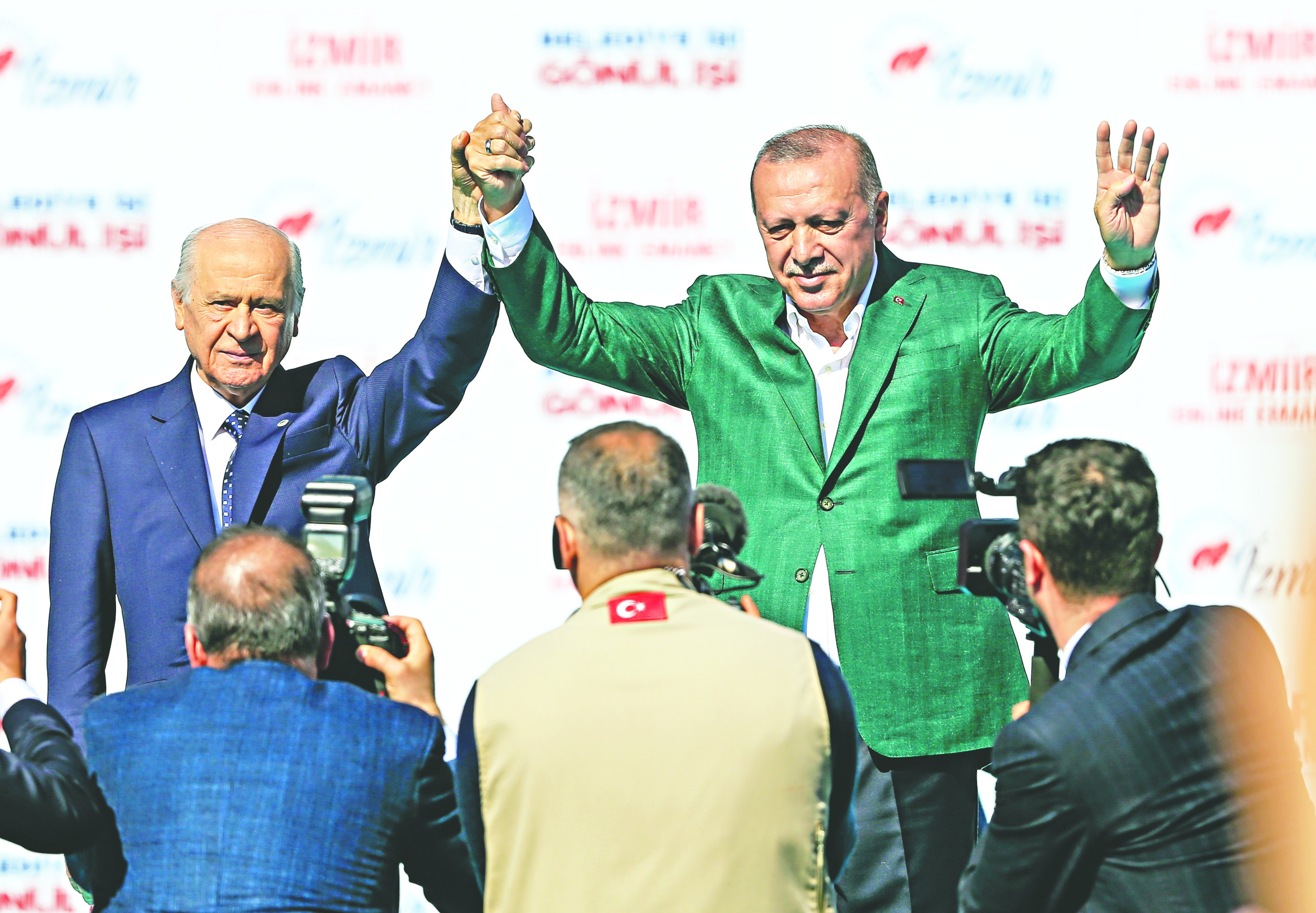 Cumhur ittifakının liderleri Erdoğan ve Bahçeli ilk kez İzmir’de boy gösterdi. Gündoğdu Meydanı’nda yüzbinlere seslenen Başkan Erdoğan, “İzmir’in sokaklarını ve körfezini kurtaracağız. İzmir’i çirkin ve çarpık yapılaşmadan kurtaracağız. 31 Mart, CHP’ye gönül veren kardeşlerimizi de Bay Kemal’den kurtarma seçimidir” dedi.