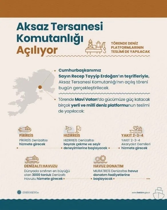Tüm bu projelerimizin devreye girmesiyle mavi vatandaki haklarımız daha etkin bir şekilde savunulacaktır. Gerçek bir deniz kuvveti demek bu platformları inşa edecek bakımı ve onarımını yapabilecek tershanelere de sahip olmayı gerektirir. Şanlı tarihimizde donanmamızın en güçlü zamanları güçlü bir tersanecilik kültürüne sahip olduğumuz dönemlerdir. Aksas Tersanesi stratejik açıdan fevkalade önemli. İleride inşallah Mersin'de de bir tershanemiz olacak. Mavi vatanın muhafızlarının her türlü bakım ve onarımlarını yapacağız.