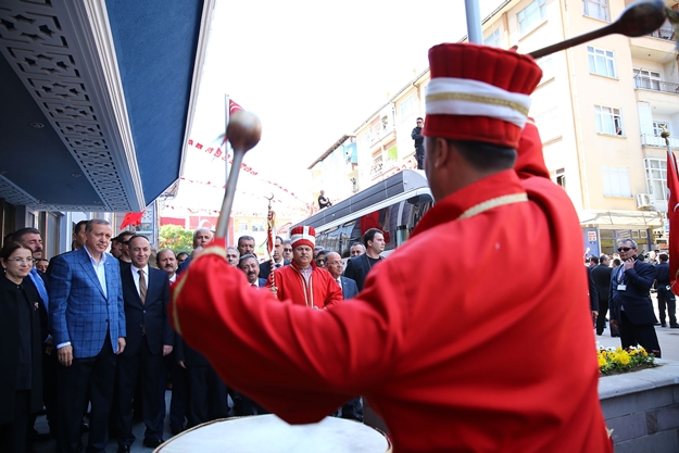 Cumhurbaşkanı Erdoğan, çeşitli açılış törenleri için geldiği Kırıkkale'de mehteran bölüğüne eşlik etti.