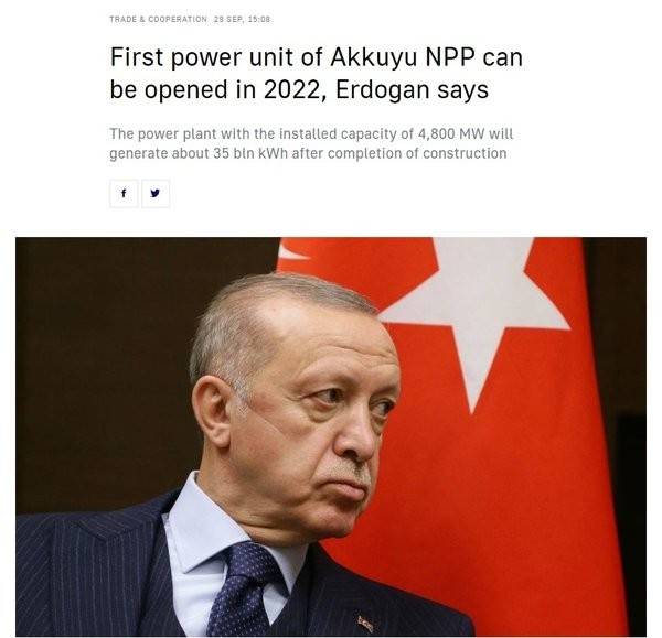 Rus medyasına yansıyan bir diğer önemli başlık ise, Akkuyu Nükleer Santrali oldu. Tass, Erdoğan'ın "Önümüzdeki yıl öyle zannediyorum ki birinci ünitenin açılışını yapabileceğiz. Yoğun bir çalışma var. Şu anda burada 13 bin insan çalışıyor, bunların 10 bini Türk, 3 bini Rus, ama bunların hemen hemen tamamına yakını da Rusya'da eğitim aldı. Bu da tabii yine aramızdaki ilişkilerin pekişmesine neden oluyor" ifadelerini manşete taşıdı.