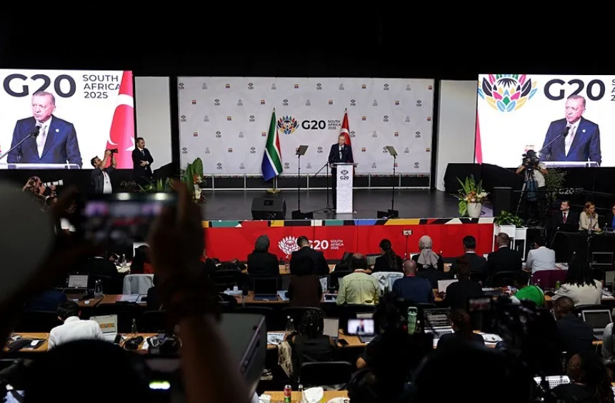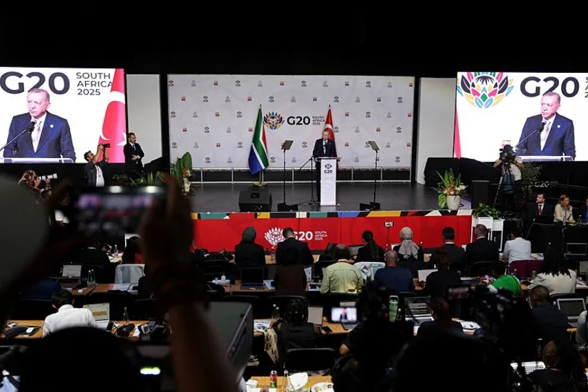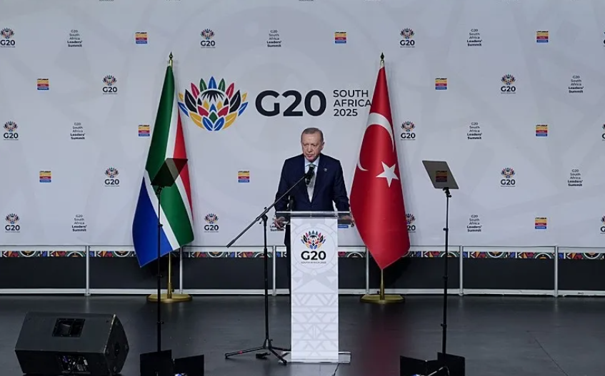 Güney Afrika'nın ev sahipliğinde "Dayanışma, Eşitlik ve Sürdürülebilirlik" temasıyla 20'ncisi düzenlenen zirvenin tüm insanlık için hayırlara vesile olmasını dileyen Erdoğan, şahsına, eşine ve heyetine gösterdikleri hüsnükabul için Güney Afrika Cumhurbaşkanı Cyril Ramaphosa'ya teşekkür etti.