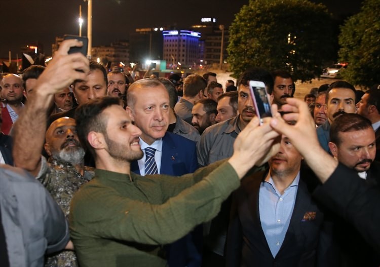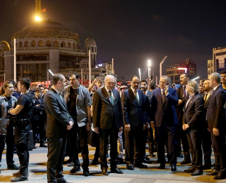 Cumhurbaşkanı Erdoğan, Star TV'de katıldığı programın ardından Taksim Meydanı'na geldi. Erdoğan, burada kendisine sevgi gösterisinde bulunan vatandaşlarla bir süre sohbet etti. Vatandaşlar Erdoğan'a "Türkiye seninle gurur duyuyor" şeklinde tezahüratta bulundu.