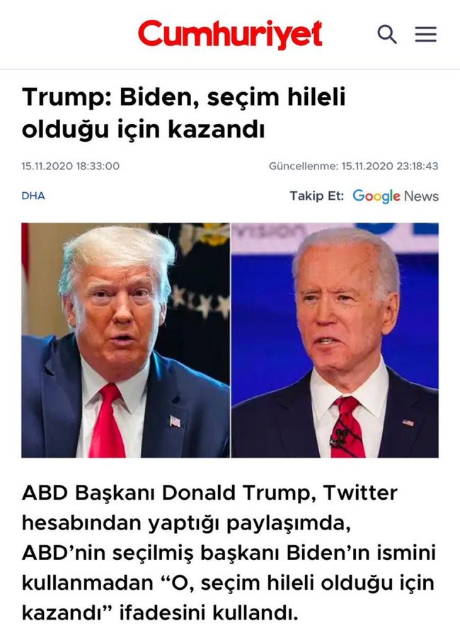 ABD Başkanı Trump, 2020 yılındaki Amerikan seçimlerindeki hileleri kastettiği halde CHP’li siyasiler ve troller konuyu Başkan Erdoğan ile ilişkilendirmeye kalkıştı.