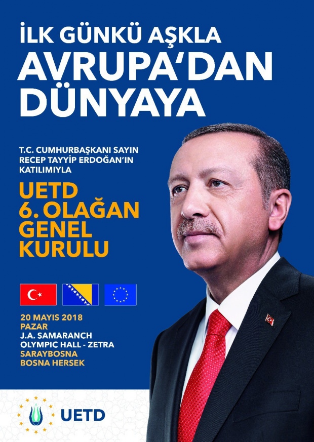 Cumhurbaşkanı Recep Tayyip Erdoğan, Bosna-Hersek'in başkenti Saraybosna'da 20 Mayıs’ta düzenlenecek Avrupalı Türk Demokratlar Birliği’nin (UETD) 6. Olağan Genel Kurul Toplantısı’na katılacak.